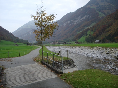 Der Weg führt teils der Engelberger Aa, teils dem Zug und teils zwischen den Beiden entlang.