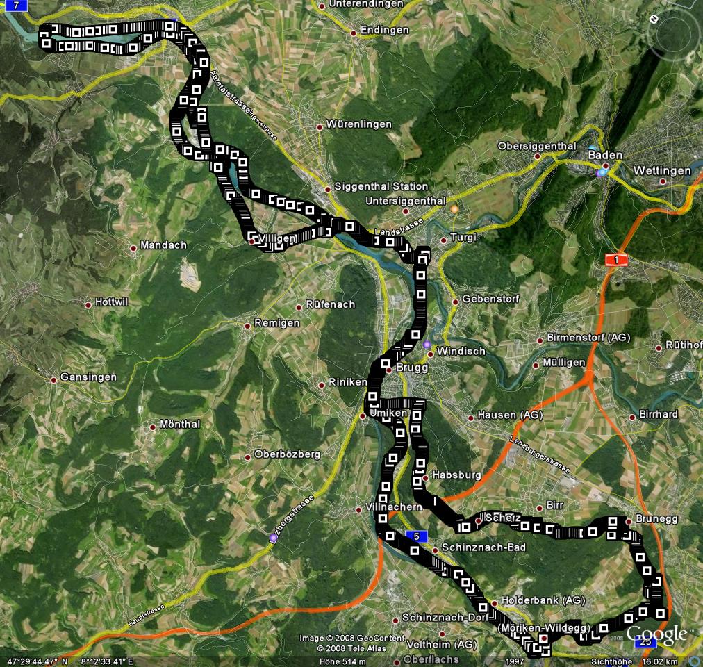 Tour: Möriken GippingenRoutenbeschreibung:Wiederum alles der Aare entlang bis zum Kraftwerk in Gippingen am Ende des Stauesees. Allerdings mit einem Umweg über die Brunegg und die Habsburg... (um doch noch einige Höhenmeter zu bekommen ;-). Technische Angaben:
