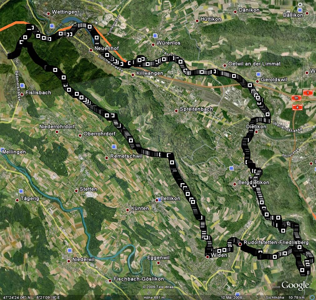 Tour: Dättwil, Rüsler, Heitersberg, Hasenberg, Friedlisberg, Dietikon, Limmatuferweg, Neuehof, DättwilTechnische Angaben: