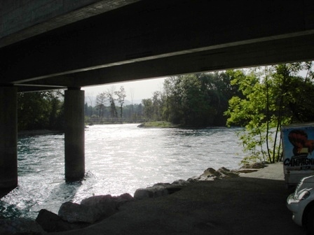 Bei der Regiebrücke in Thun starten jeweils die Flosse Richtung Bern. Und wir mit den Bikes...