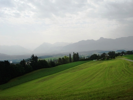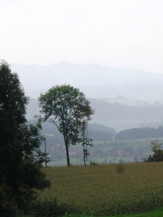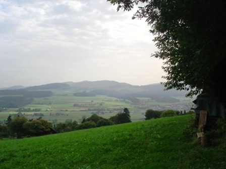 Hoch über Gerzensee sieht man dieses herrliche Panorama mit "Stügu", Niesen, Niederhorn und dahinter im Dunst den Eiger, Mönch und Jungfrau...