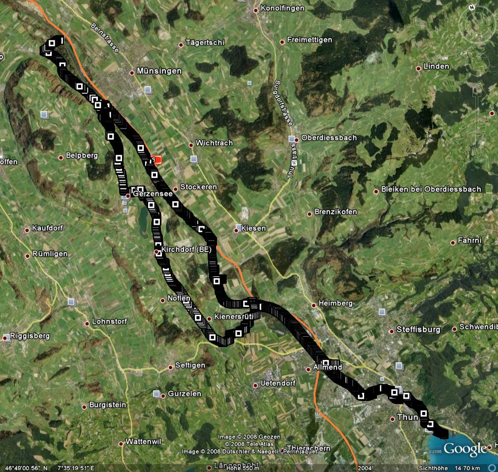 Tour: Hunzigenbrügg, Gerzensee, Kaufdorf, Seftigen, Uttigen, Thun, Hünibach, am rechtsseitiges Aarenufer wieder zurück zur Hunzigenbrügg (bei Rubigen)Technische Angaben: