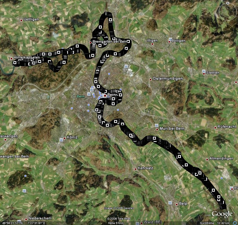 Tour: Hunzigenbrügg, Muri, Dählhölzli, Mazili, Bärengraben, Zollikofen, Reichenbach, Bremgarten, Hinterkappelen und dann wieder (meistens) auf der anderen Seite der Aare zurück bis zur HunzigenbrüggTechnische Angaben: