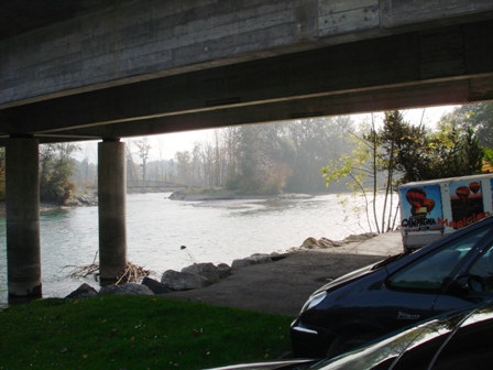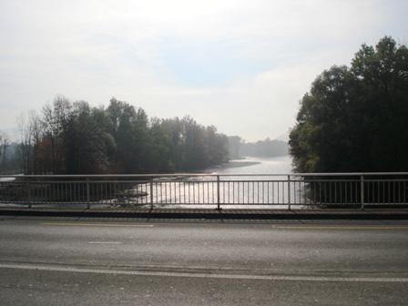 Auf der Hunzigenbrügg Richtung Oberland, welches noch im Nebel liegt und Richtung Bern