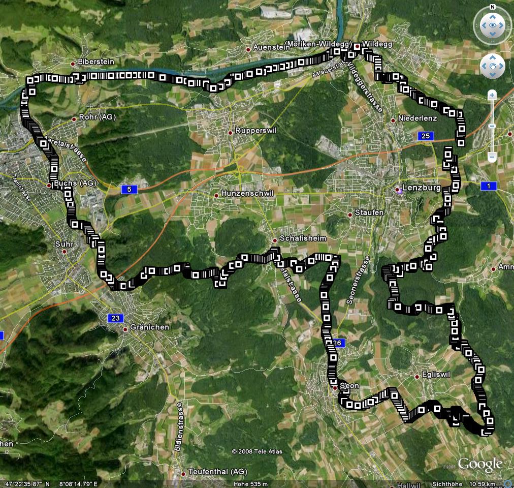 Biken mit Walter und NellyRoutenbeschreibung:Wildegg, Aarau, Suhr, Gränicher Waldhütte, Schafiserstich, Staufenrwald, Seon, Eichberg, Esterli, Lenzburg, Römerstein, Möriken Technische Angaben: