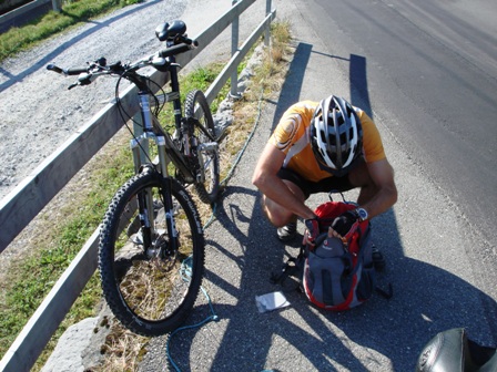 Folge davon, zwei Verletzte, eine Bikeschaden von nahezu CHF. 2'000.--. Richard (mit dem gelben Dress) musst die Hand operieren lassen. Und ich war einfach blau vom feinsten und hatte einige Prellungen.