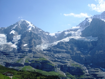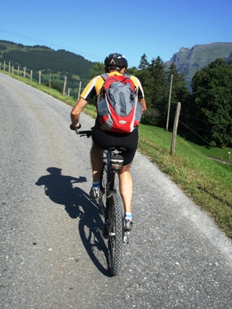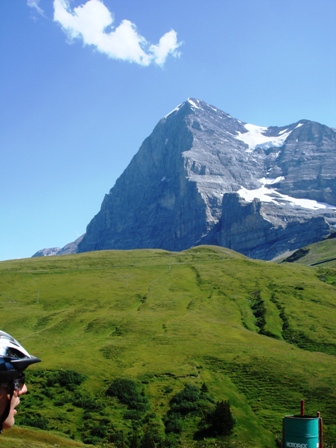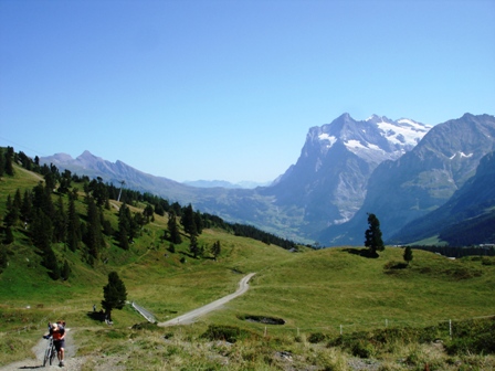 Auf dem schönen Downhill immer wieder die imposante Bergwelt mit der Jungfrau im Zentrum.