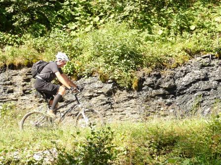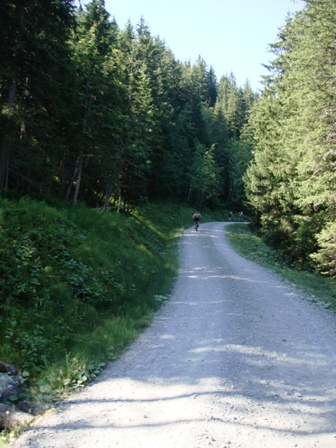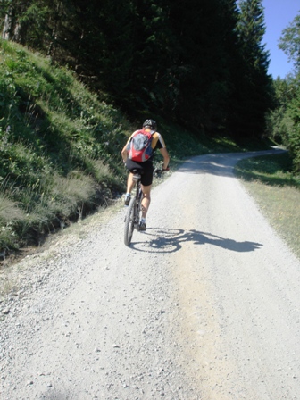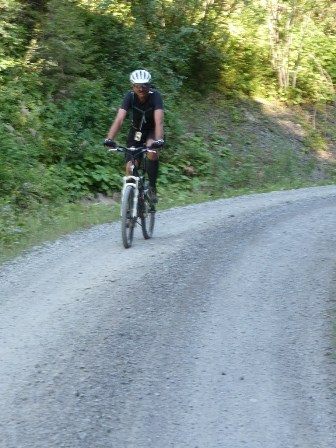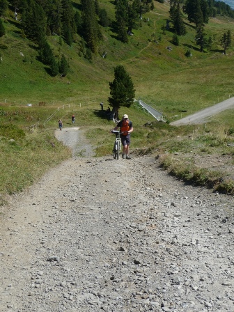 ... plötzlich ging's unheimlich schnell. Die Bremsen laufen heiss und versangen im Downhill den Dienst.