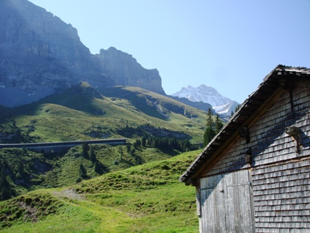 Da geht's hinauf. Schon nach wenigen Metern hat man einen schönen Blick auf Grindelwald.