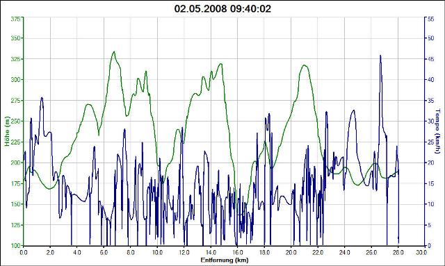Garmin:Das Höhenprofil und eine Geschwindigkeit von Garmin: