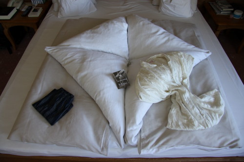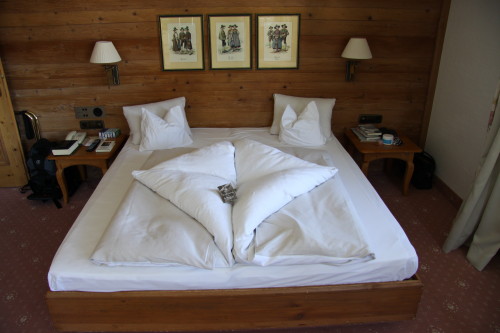 So werden im Posthotel die Betten gemacht. Und das jeden Tag mit einer anderen Falttechnik