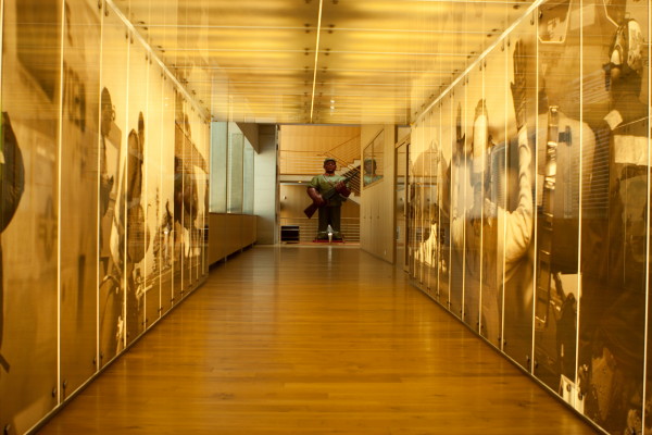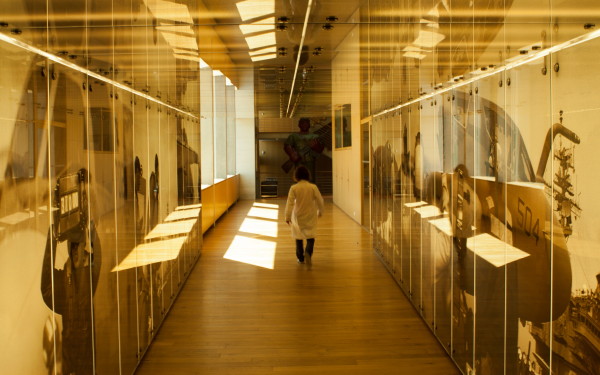 Der Durchgang von der "alten" zur neuen Manufaktur, bewacht von einem chinesischen Wachmann.