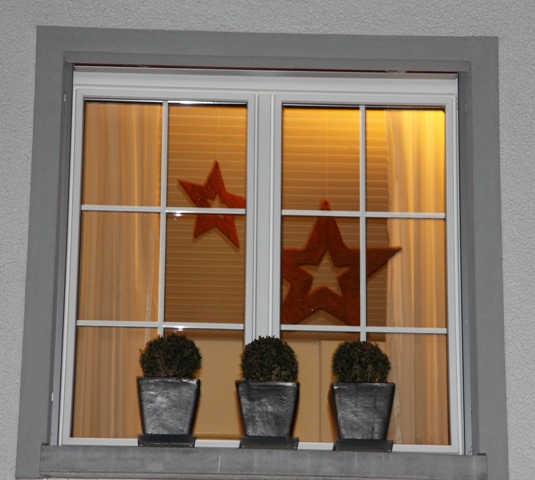 Weihnachtsschmuck und Bild Die geschmückten Fenster am Lärchenweg 6