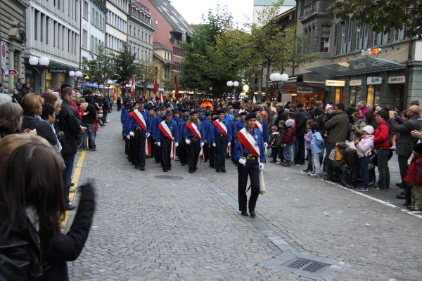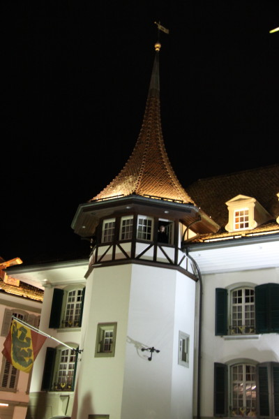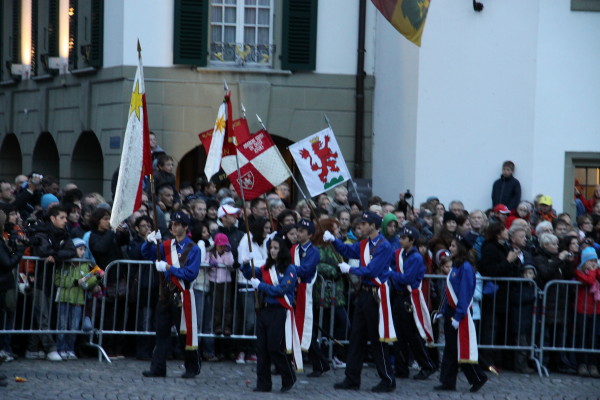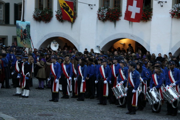 Der Tag erwacht über Thun und die Kadetten bereiten beim Rathaus den Umzug durch die Stadt zum Berntor vor.