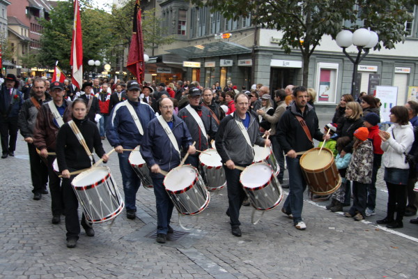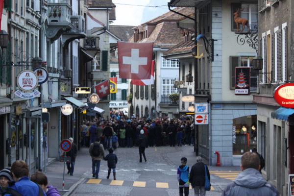 Dr'Fulehung begleitet den Tagwach - Umzug durch die Hauptgasse und durch's Bälliz.