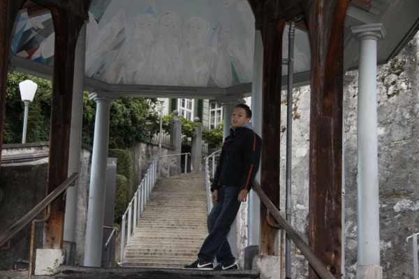 Bis ins Schloss sind es 240 Stufen. Die Hälfte ist schon mal geschafft und dr'David F. auch... Viele kleine Gässchen und Treppen für...