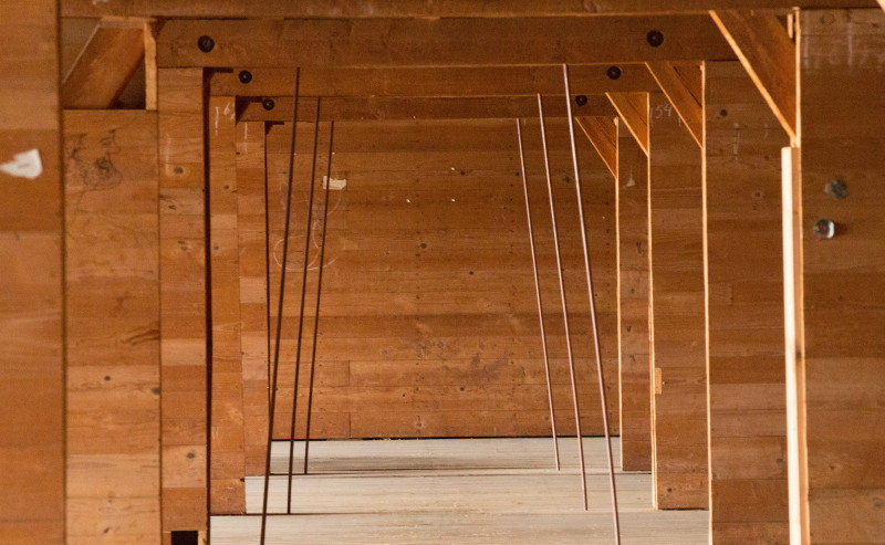 Holzkonstruktion im besonderen Licht.