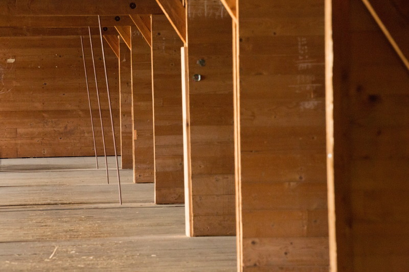 Weite Holzhalle für die Lagerung.