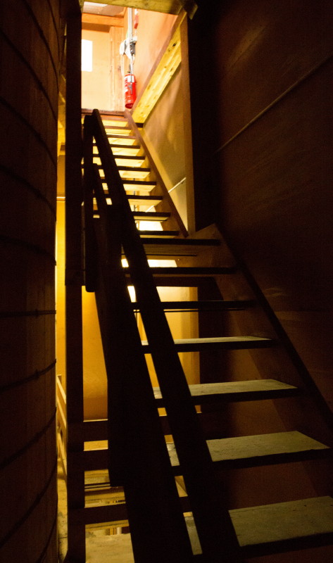 Die Holztreppe in der Holzhalle bei den Holzsilos.
