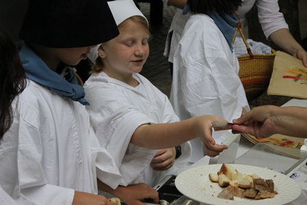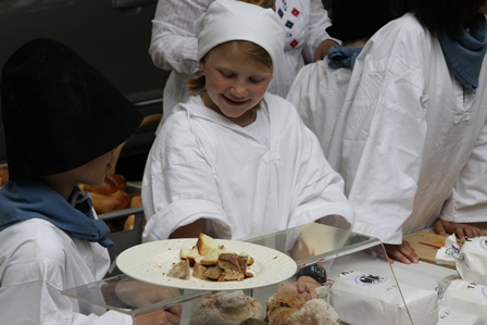 Kinder verkaufen Brote...