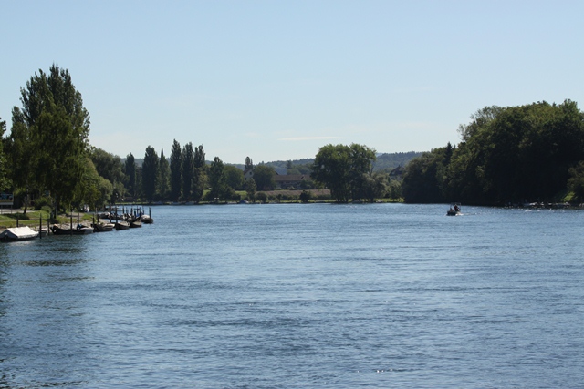 Kommt ein Schiff den Rhein runter und muss anlegen, dann muss der Kapitän das Schiff jeweils Stromaufwärts wenden...