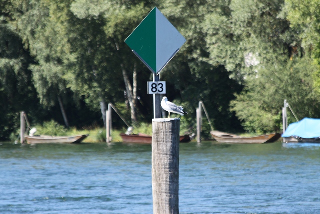 Trifft der Kapitän diesen Pfosten so mitten im Rhein wohl dieses Mal?