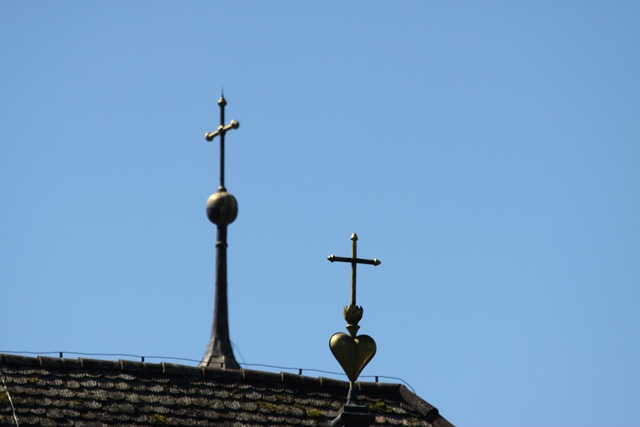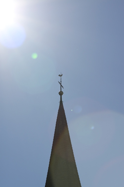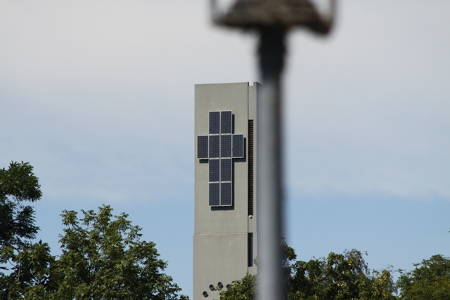 Wird diese Strassenlampe durch die Solarzellen aus dem Kirchenturm gespeist?