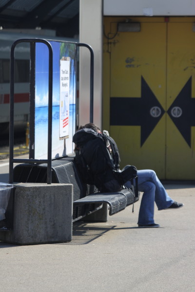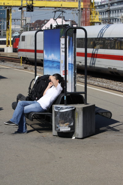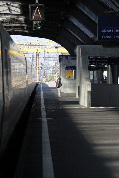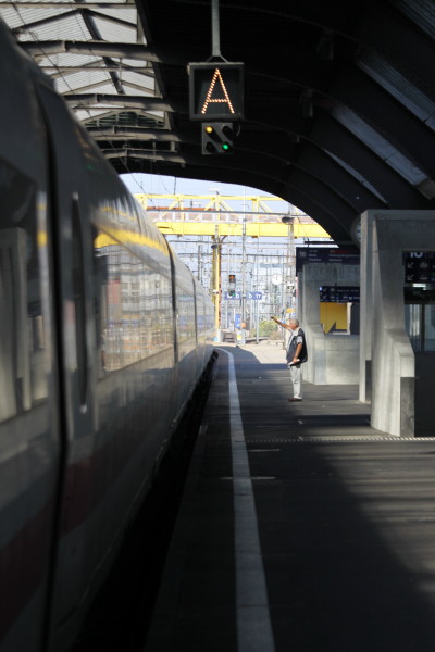 Noch zwei Minuten bis zur Abfahrt (oder Abflug; ist dies ein Flügzüg oder ein ICE) Eine letzte Zigarette vor der Reise nach Hamburg!