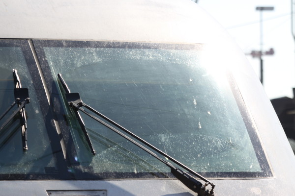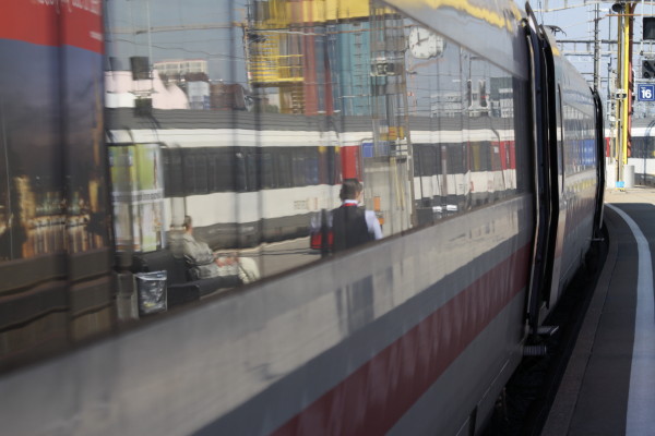 "Gramper" und ihr Spiegelbild auf dem (zufällig rollenden) Pendolino...