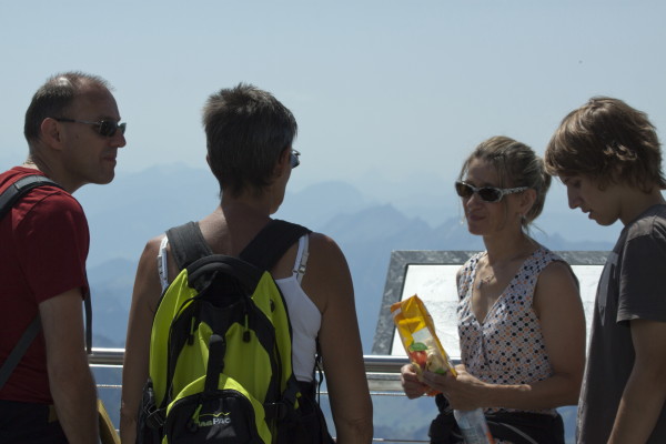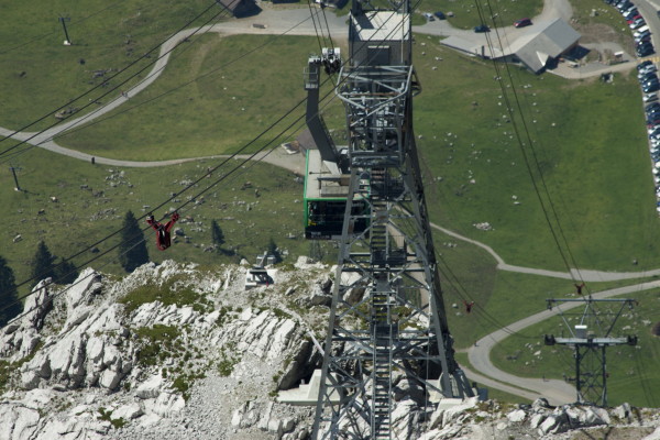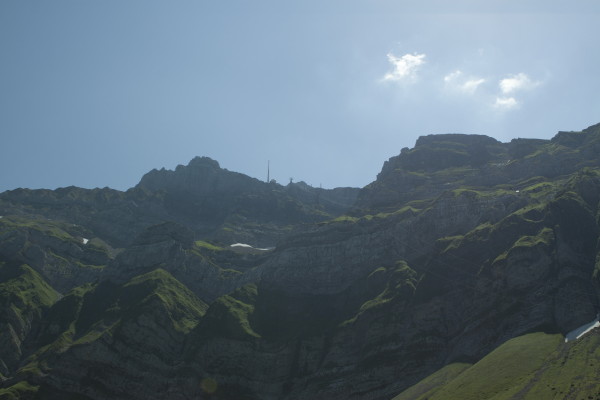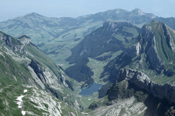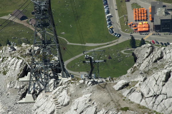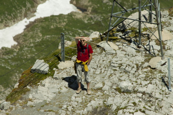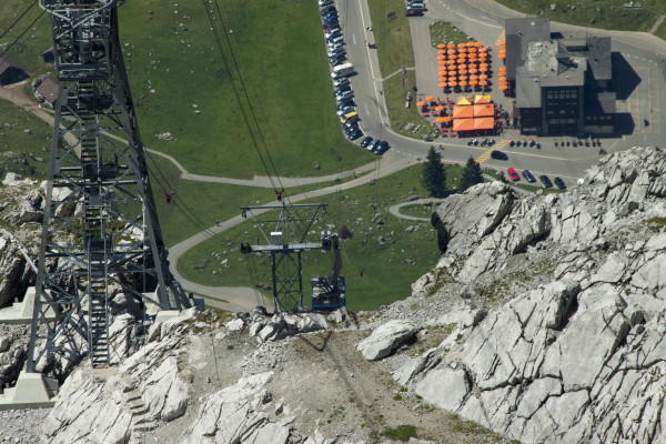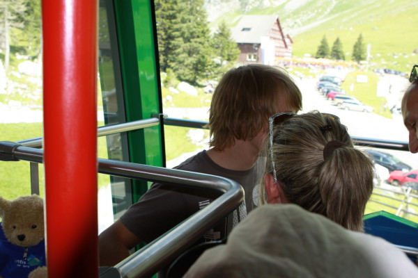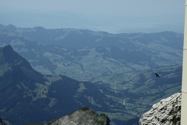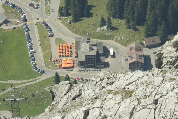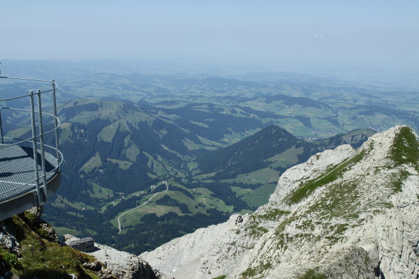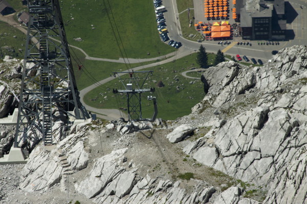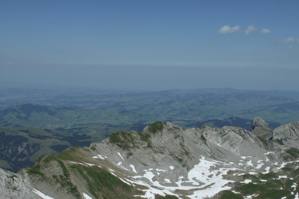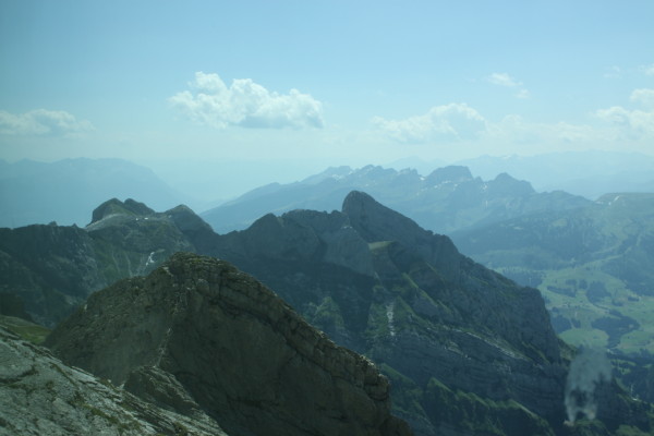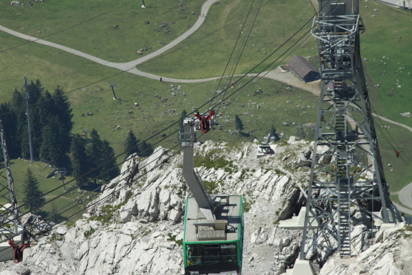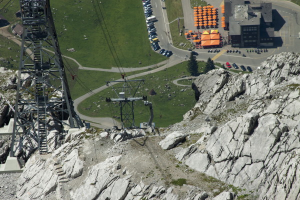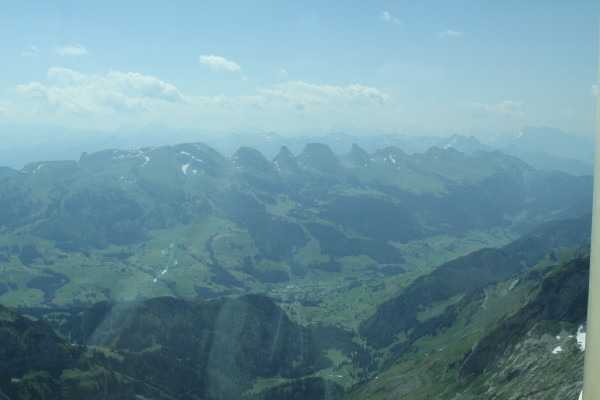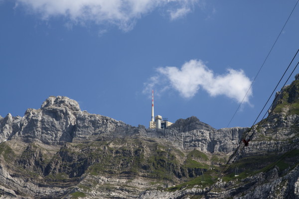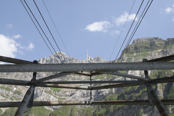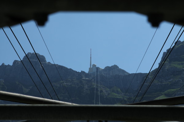 Hier nun einige Bilder von der Aussicht vom Säntis an diesem schönen Freitag.Der Weg ist das Ziel! Unserer führt über die Seile! Da uche? Chömmet mer gö! Wer hat da was mit dem Bärli? Über 200 Meter ist die grösste Bodenfreiheit! (Gleich nach dem Masten) Ich zeige nicht was ich mache, oder doch... He? oder heisst es: wie bitte? Was macht d'Chrege da oder was het se z'verstecke? Endlich habe ich mal einige Bilder vo mim Stefe! Erweiterter Familienrat!