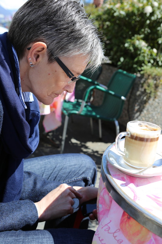 Warten auf den Insalate caprese, die feine Pizza alla case und das Glas Merlot.