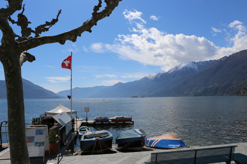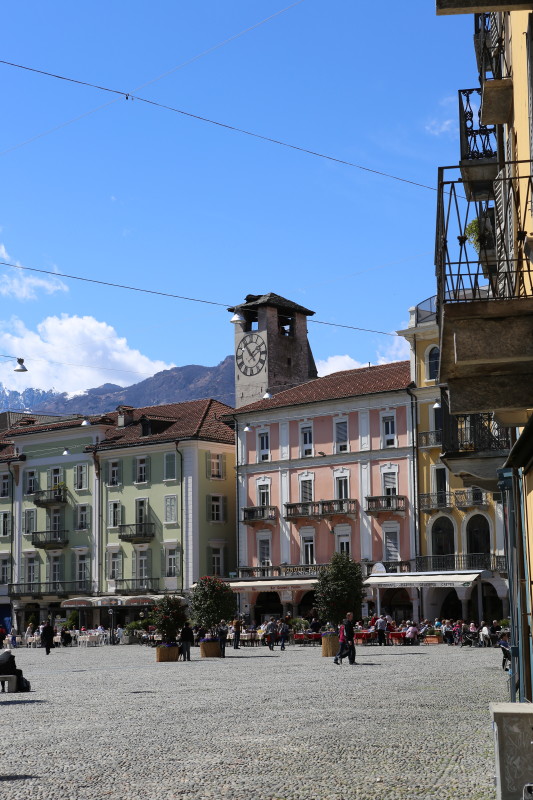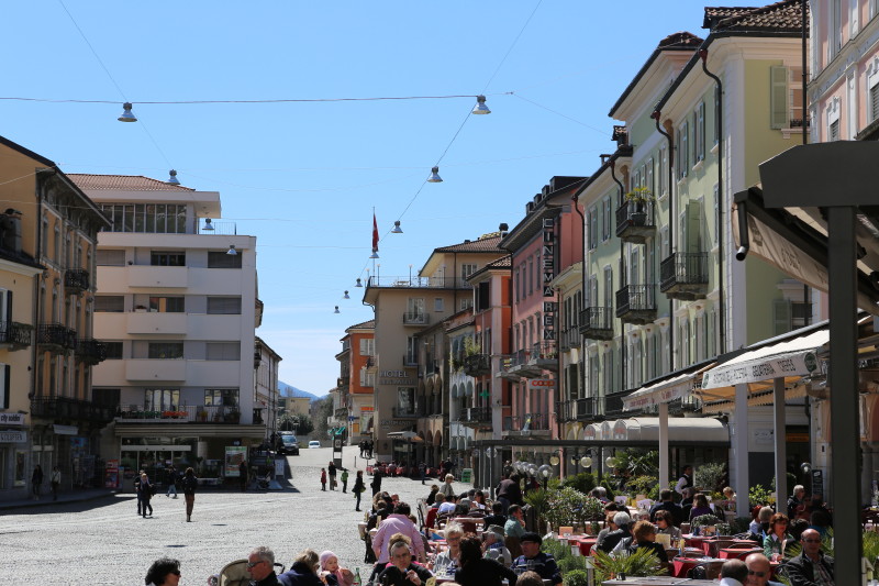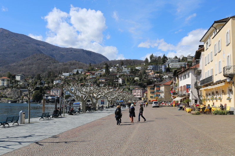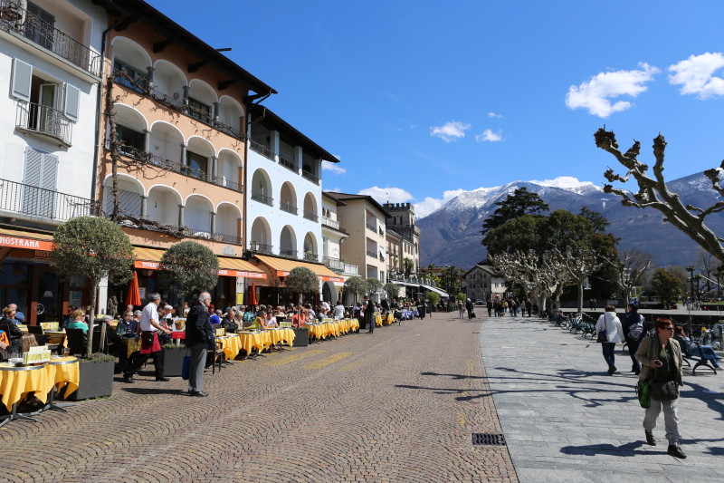 Locarno James Bond's Dr. No! Noch liegt viel Schnee in den umliegenden Bergen! Das sind keine Weicheier oder Warmduscher! Ascona's Seesicht! Immer wieder trifft Künstler auf Künstler... Auf dem Balkon die warme Sonne geniessen und tratschen! Die Promenade von Ascone Locarno's Piazza Grande! Mit seinen Bistros, welche zum verweilen an der Sonne einladen! |