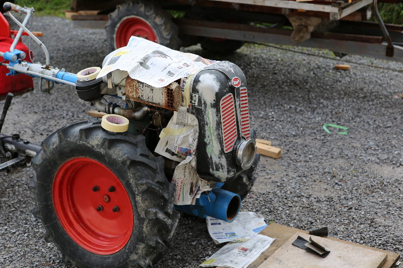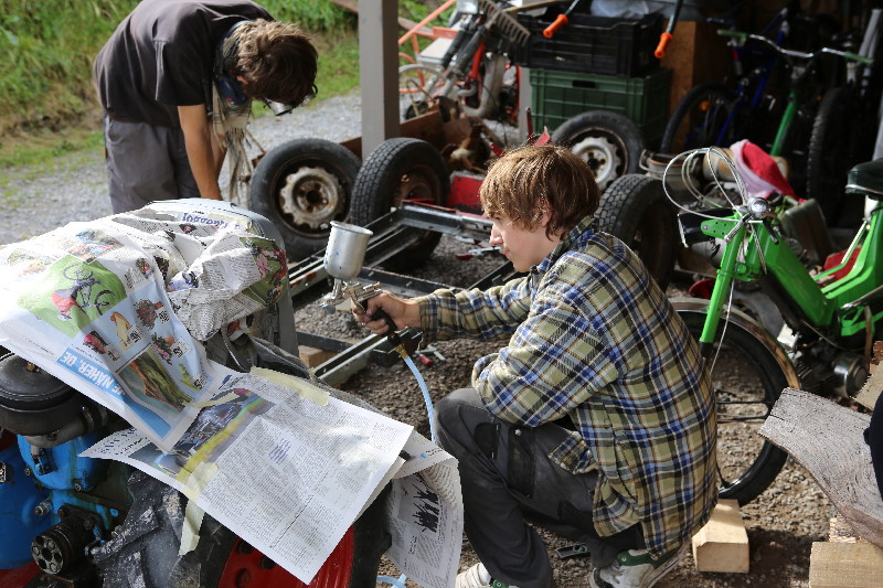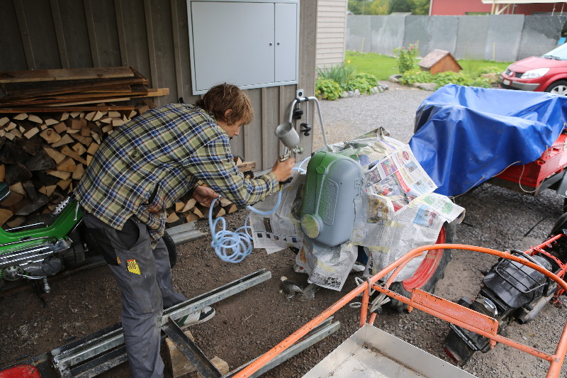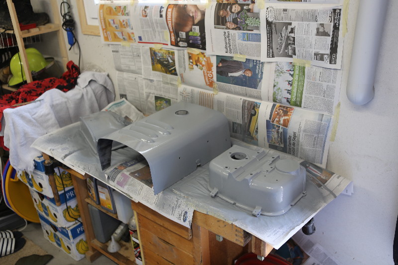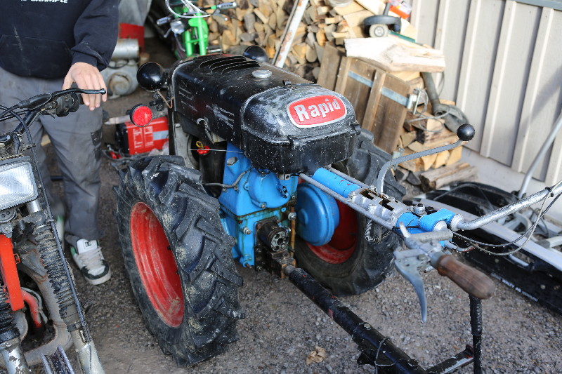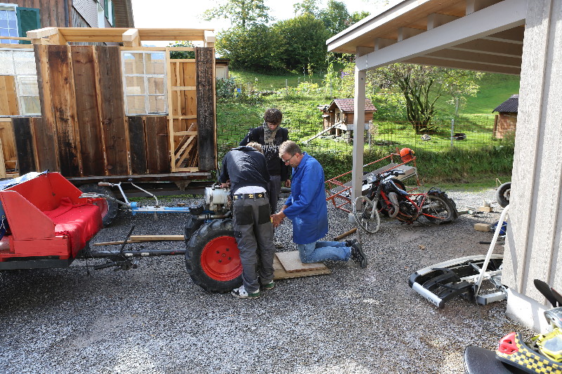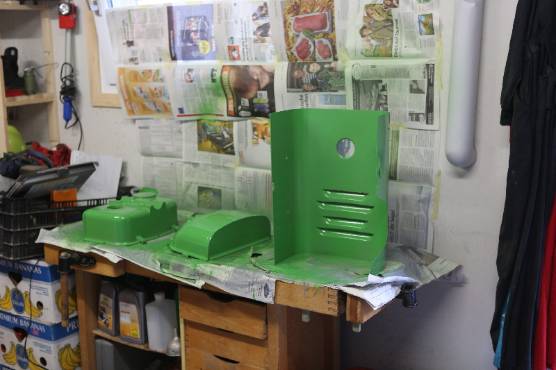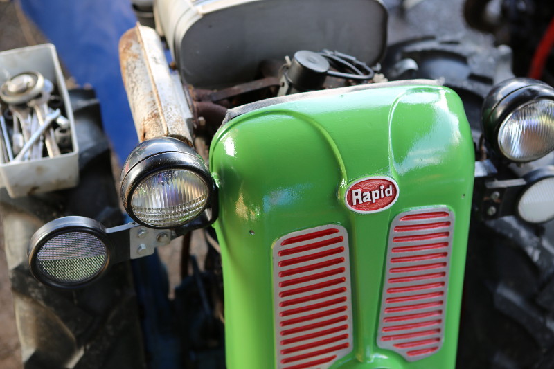 Rapid ist ein Einachser, welcher im Bauerngewerbe oft anzutreffen ist. Hier treffen wir einen solchen bei Cédi an. Er ist nicht mehr ganz Original. Ein grösserer Teil der verschiedenen Abdeckungen wurde mal - warum auch immer - schwarz übermalen. Cédi und ich wollen diesen nun wieder in den Originalzustand bringen. Dazu haben wir etwas RAL 6017 Farbe mit Härter und Verdünner sowie Grundierung beschafft. Selbstverständlich fehlt es auch nicht an den verschieden gekörnten Schleichpapieren (80-er, 120-er, 200-er und 400-er). Dann haben wir uns in die Überkleider gestürzt und sind mit viel Enthusiasmus an die Arbeit gegangen... t So hat er mal ausgesehen...