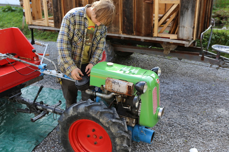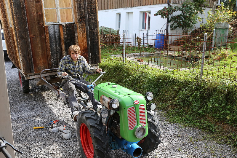 Nach getaner Arbeit freut sich Cédi an dem schönen Original-Einachser Rapid!