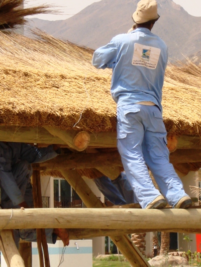 "Ine stäche, dürezieh und abe la". Mit "Reisbesen" werden die Dächer "genäht".