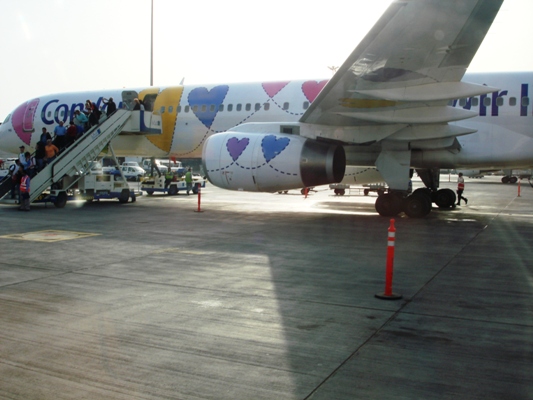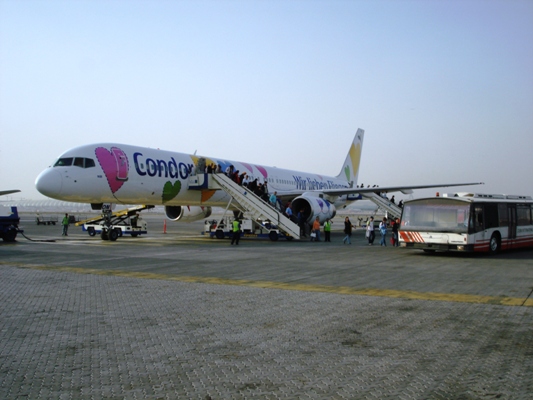 Wird es wohl ein Jumboflug geben? Nein, leider "nur" eine 757-300 mit anstatt 260 nur 200 Passagieren an Bord. Zwei davon aus Möriken...