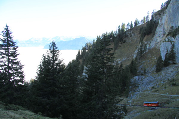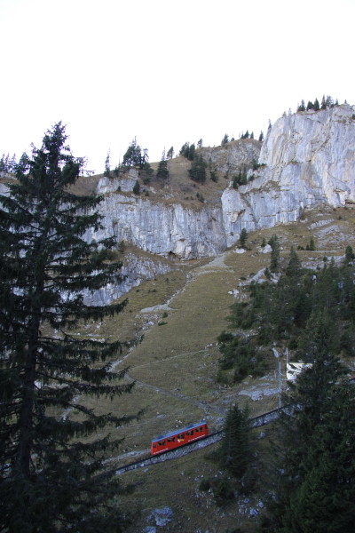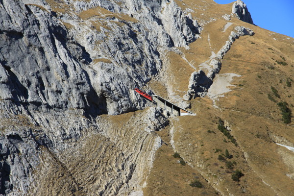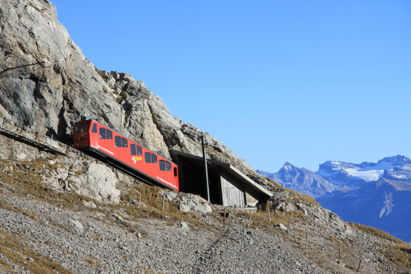 Die Attraktion des Pilatus. Die steilste Standseilbahn der Welt mit bis zu 48% Steigung!