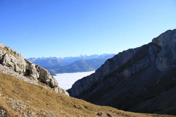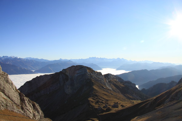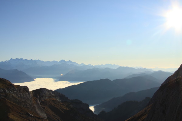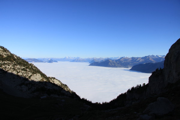 Der goldene November 2011 mit seinem vielen Nebel, hat uns dann und wann an schönen freien Tagen hinausgezogen. Hinaus und hinauf. Auch wenn ich selber nicht der prädestinierte Wanderer bin, so habe ich mich doch "überwunden". Einmal auf den Pilatus. Ein andermal auf's Brunni ob Engelberg. Beide Male sind wir in der Zwischenstation ausgestiegen und den "Rest" hochgestiegen. Beim Pilatus ist das sicher steigen, denn auf 3,3km sind es immerhin fast 800 Höhenmeter oder eine durchschnittliche Steigung von über 20%! Auf's Brunni war es nicht ganz so schlimm. Die Farbenspektakel waren aber bei beiden Wanderung herrlich. Auf dem Pilatus immer wieder ein herrliches Nebelmeer. Und dies im wörtlichen Sinn. Soweit das Auge reicht, soweit gab es Nebel... In Engelberg hing der Himmel - nein nicht voller Geigen - sondern voller Gleitschirmflieger. So etwas habe ich noch nie gesehen! Fünfzig und mehr Flieger über einer Alp! Veu Schpass beim geniessen der Bilder...