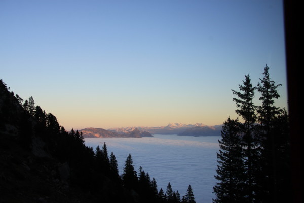 Die Rigi im letzten spiegelnden Sonnenschein des Kulmhotels...