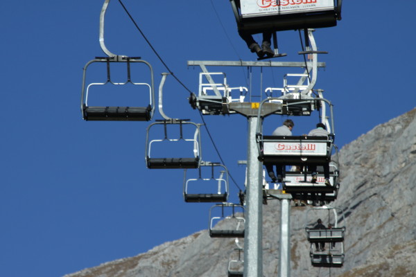 Nicht nur gleiten sondern auch klettern war populär... Fast gfürchig! Und da hinunter müssen alle wieder!
