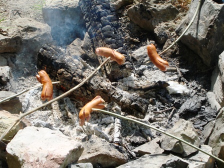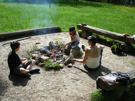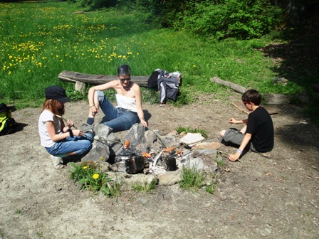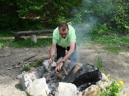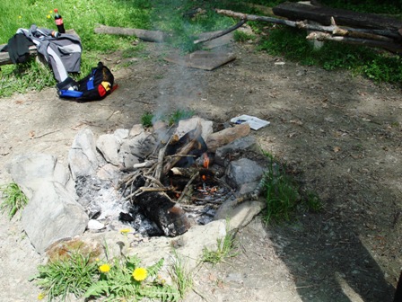 "Es brönnt wieder, ds'Fürli...". Man sieht einen ehemaligen Pfadfinder am werken...