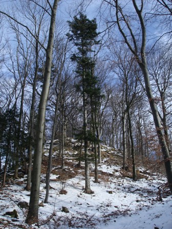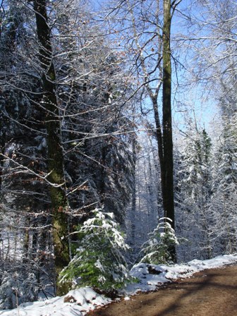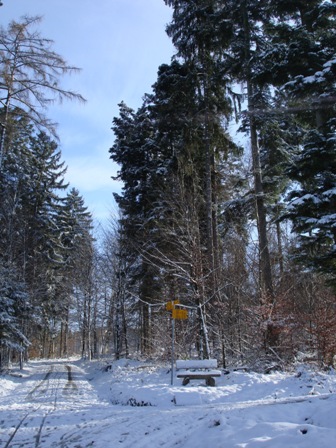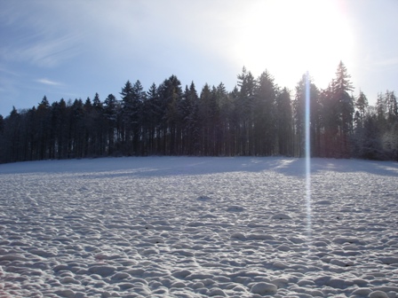 Über Felder im "Schneechasten" und am Wegrand "Chrüxbiger" zwei Tannebäumli.