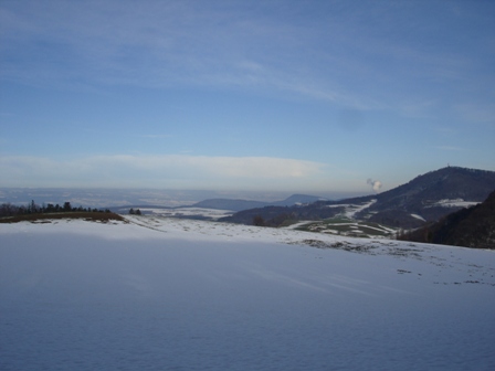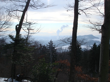Hinter dem "Asperstrihen" entdeckt man die Rauchsäule von Leibstadt. Auf der anderen Seite die Salhöfe