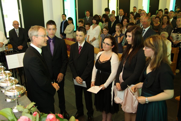 David F. unser Gotti/Göttibueb wurde am 10. April 2011 in der Neuapostolischen Kirche Lenzburg-Staufen konfirmiert. Einen wunderschönen Frühlingstag durfte er und seine geladenen Gäste sowie die weiteren 4 Konfirmanden erleben. Einem schönen Gottesdienst folgte die Handlung der Konfirmation. Anschliessend durften sich die Konfirmanden von der ganzen Festgemeinde verabschieden. Im Familienkreis wurde dann weitergefeiert. Zuerst bei Stefan zu Hause ein Apero, dann im Wilden Mann in Schönenwerd ein feines Mittagessen. Nachstehend einige Bilder dieser Konfirmation.